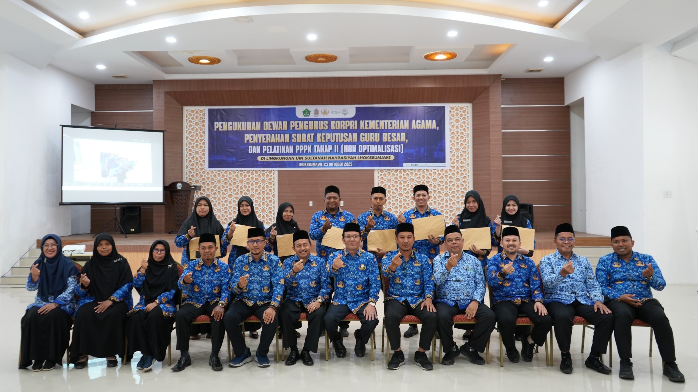 Sementara itu, Rektor UIN SUNA Lhokseumawe Prof. Dr. Danial, M.Ag didampingi Kepala Biro AUAK H. Akly, M.H dan Wakil Rektor II Dr. Said Alwi, M.A menyerahkan langsung Surat Keputusan (SK) PPPK Tahap II Non Optimalisasi.