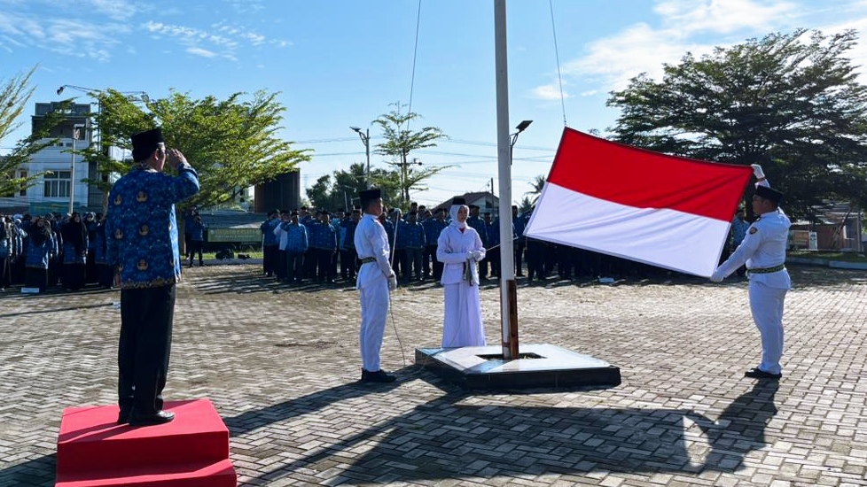 Rektor UIN Sultanah Nahrasiyah Lhokseumawe, Prof. Dr. Danial, M.Ag., bertindak sebagai pembina upacara sekaligus membacakan amanat Menteri Pemuda dan Olahraga Republik Indonesia, Erick Thohir.