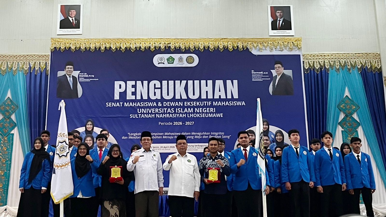 www.uinsuna.ac.id - Universitas Islam Negeri (UIN) Sultanah Nahrasiyah Lhokseumawe resmi melantik pengurus Dewan Eksekutif Mahasiswa (DEMA) dan Senat Mahasiswa (SEMA) periode 2026–2027, Senin (20/04/2026), di Gedung Serbaguna kampus setempat.