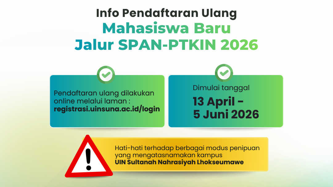 Catat Tanggalnya! Daftar Ulang SPAN-PTKIN UIN SUNA Lhokseumawe Dibuka Hingga 5 Juni 2026