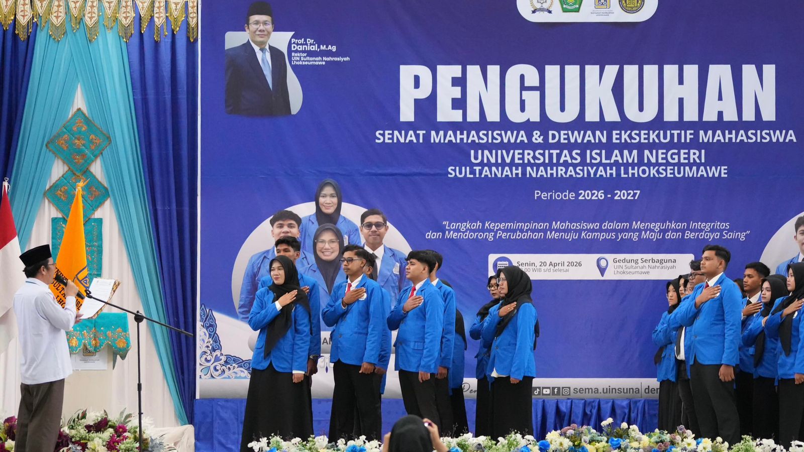 www.uinsuna.ac.id - Universitas Islam Negeri (UIN) Sultanah Nahrasiyah Lhokseumawe resmi melantik pengurus Dewan Eksekutif Mahasiswa (DEMA) dan Senat Mahasiswa (SEMA) periode 2026–2027, Senin (20/04/2026), di Gedung Serbaguna kampus setempat.